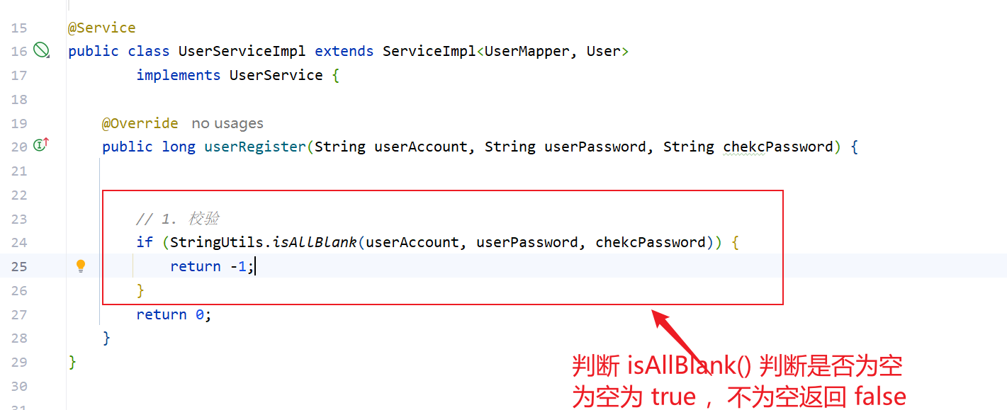 if(StringUtils.isAllBlank(userAccount,userPassword,checkPassword)) {
