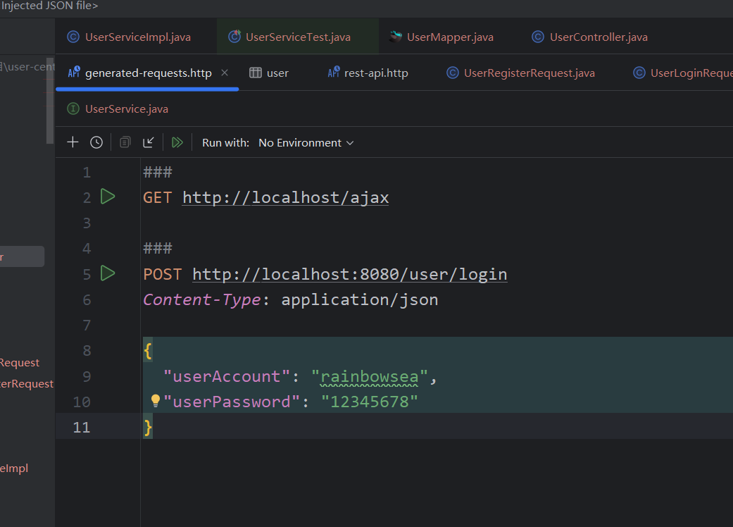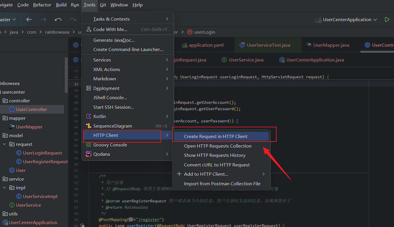 这里我们不使用 postMan ,而是使用 IDEA 自带的一个 HTTP Client工具: