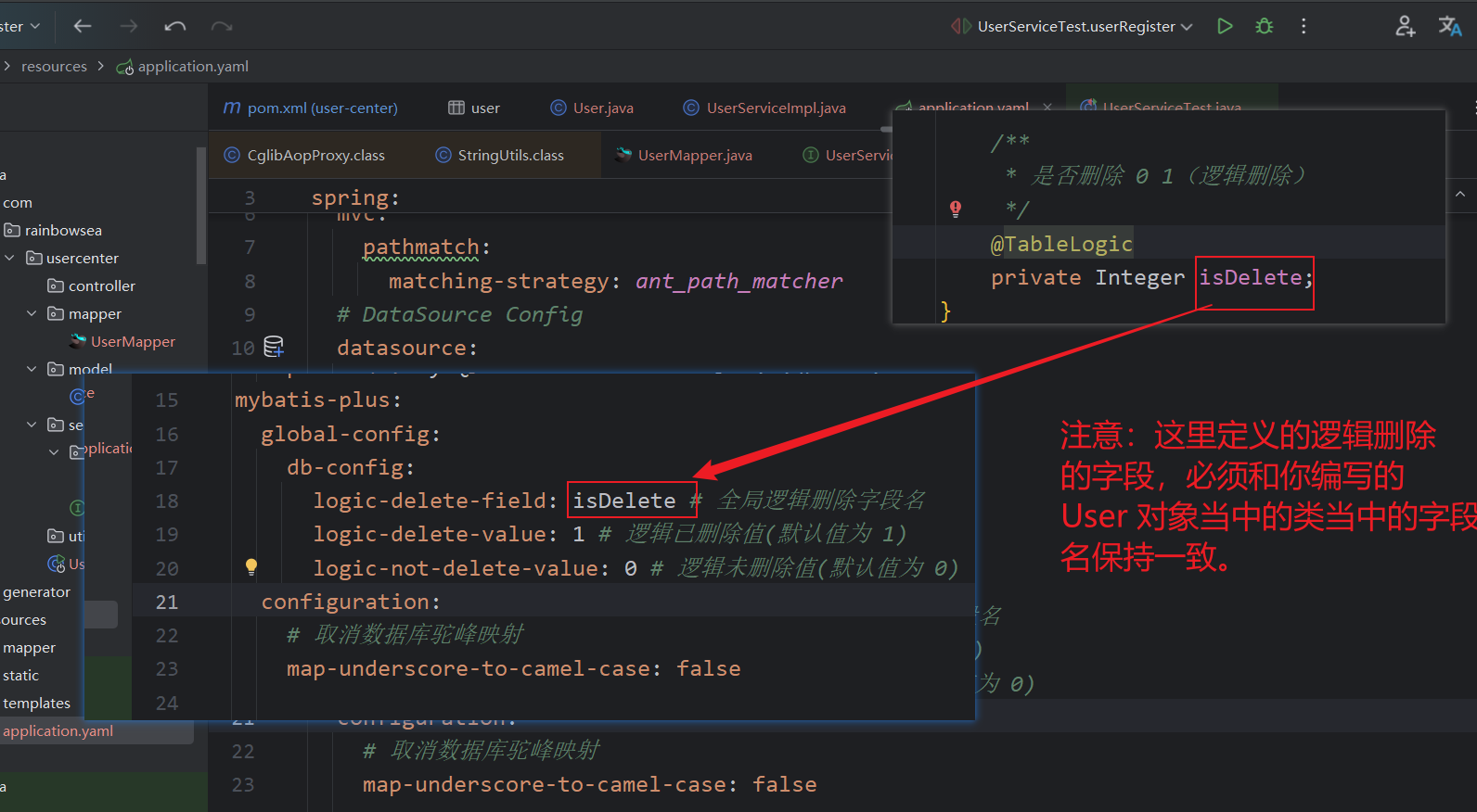 这里我们优化将我们的一个 用户登录态键配置在,这里的 UserService的接口当中,这样我们就可以在多个位置上进行引用该用户登录态键,作为,一个判断用户是否登录的一个操作。