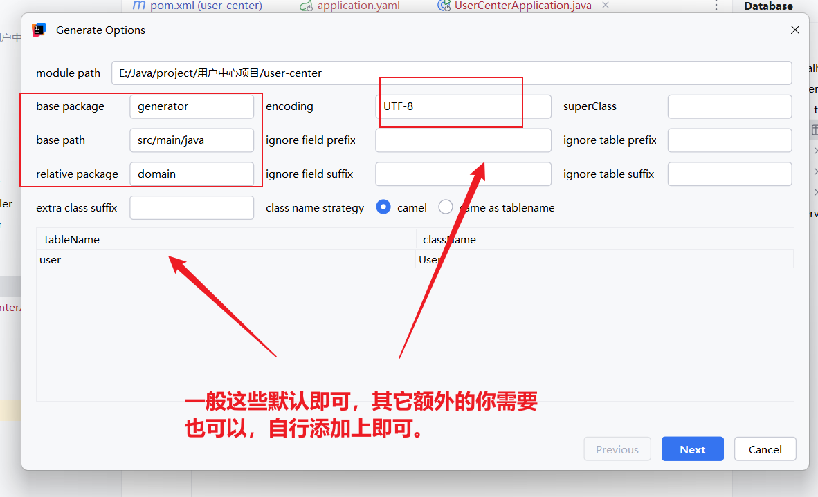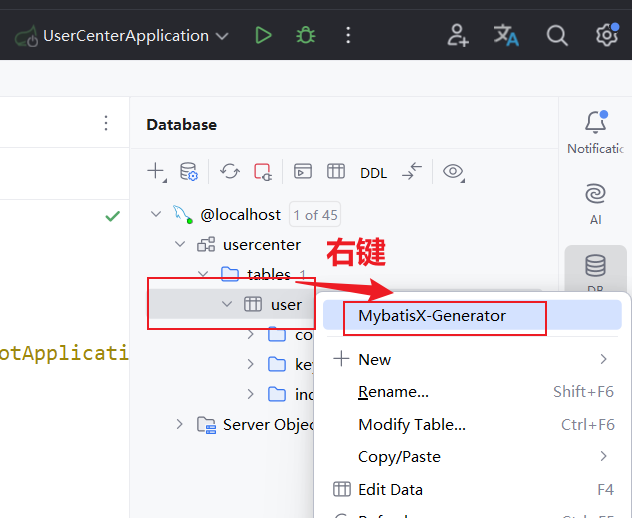 同时这里我们对数据库重新更新了一下,添加了一个 userRole 角色字段,userRole int default 0 not null comment '用户角色 0- 普通用户 1 - 管理员 2 - vip'