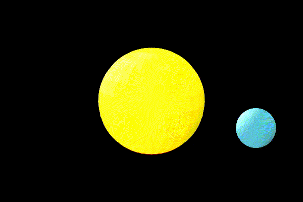 地球绕着太阳公转,且在绕的过程中逐渐变色(可用来模拟白天黑夜)。
