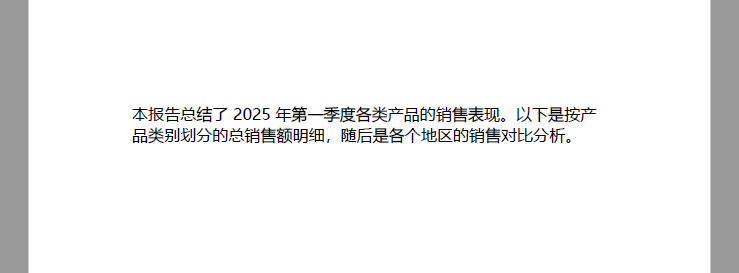 text = ("本报告总结了 2025 年第一季度各类产品的销售表现。"