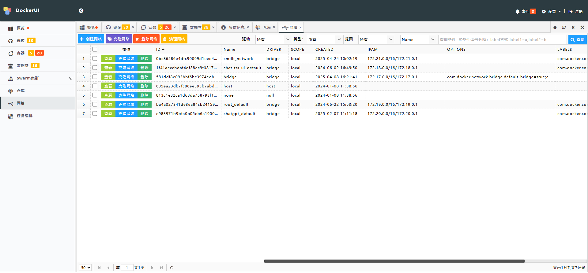 - Docker 主机管理:支持数据卷管理、镜像管理、容器管理、构建管理、仓库配置管理以及网络配置管理