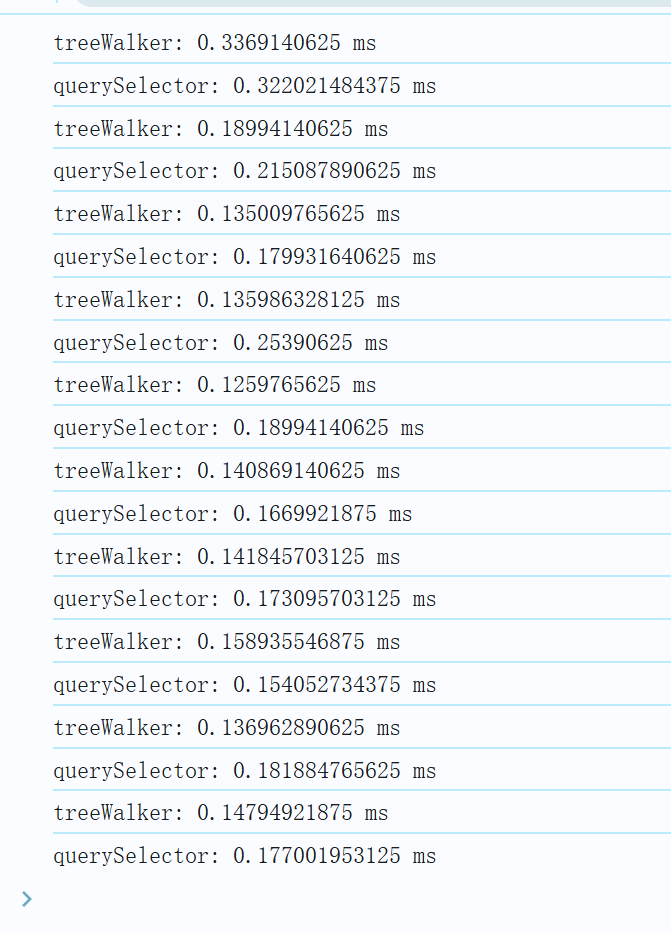 这两个本来就是适用于不同场景,获取元素基本上还是用querySelector(),不过涉及到复杂循环遍历时就可以考虑 TreeWalker 了。