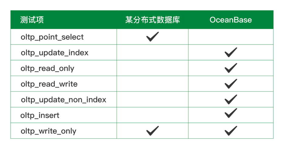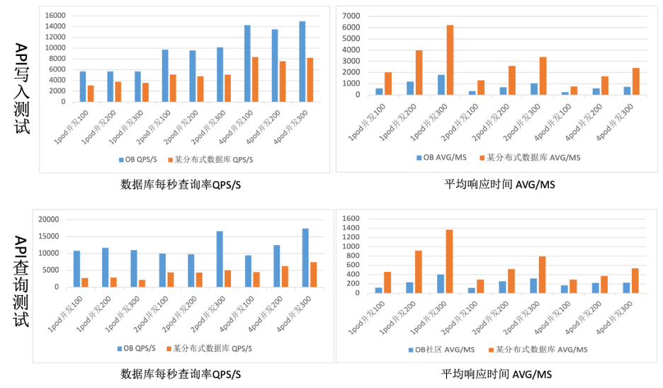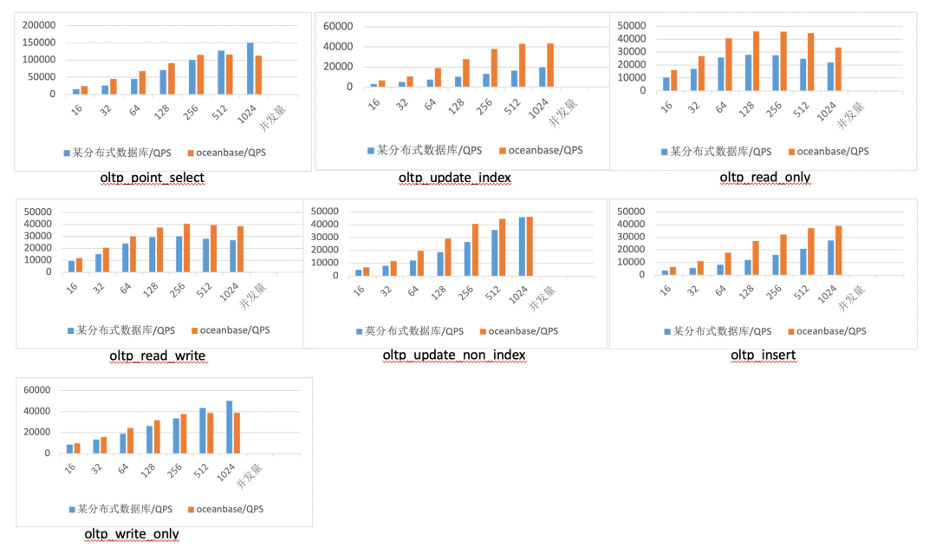 图6 OceanBase与某分布式数据库的性能测试结果对比
