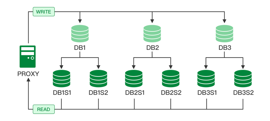 MySQL扩展架构通常出现在业务膨胀的情况下,上述三种架构仍无法保证业务稳定时,可以通过分库分表与读写分离综合运用的方式来解决性能问题。