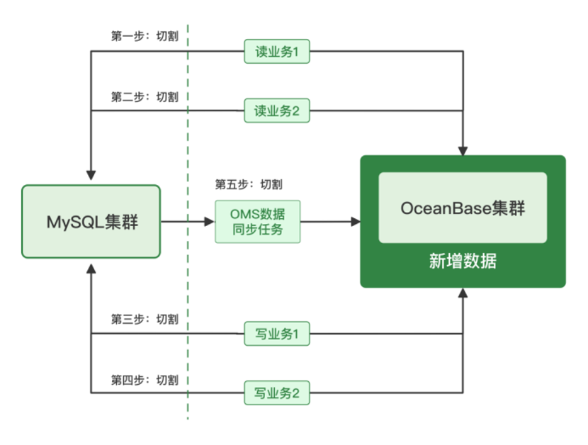 - 在线不停服迁移,业务应用无感知。在不停服的情况下,可以通过OMS无缝迁移数据至OceanBase。应用切换至OceanBase后,OceanBase数据库上所有的变更数据会实时同步至切换前的源端数据库。