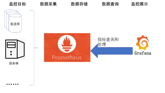 从图中可以看到Prometheus 完成了数据采集和数据存储的功能,而Grafana完成了监控展示的功能。