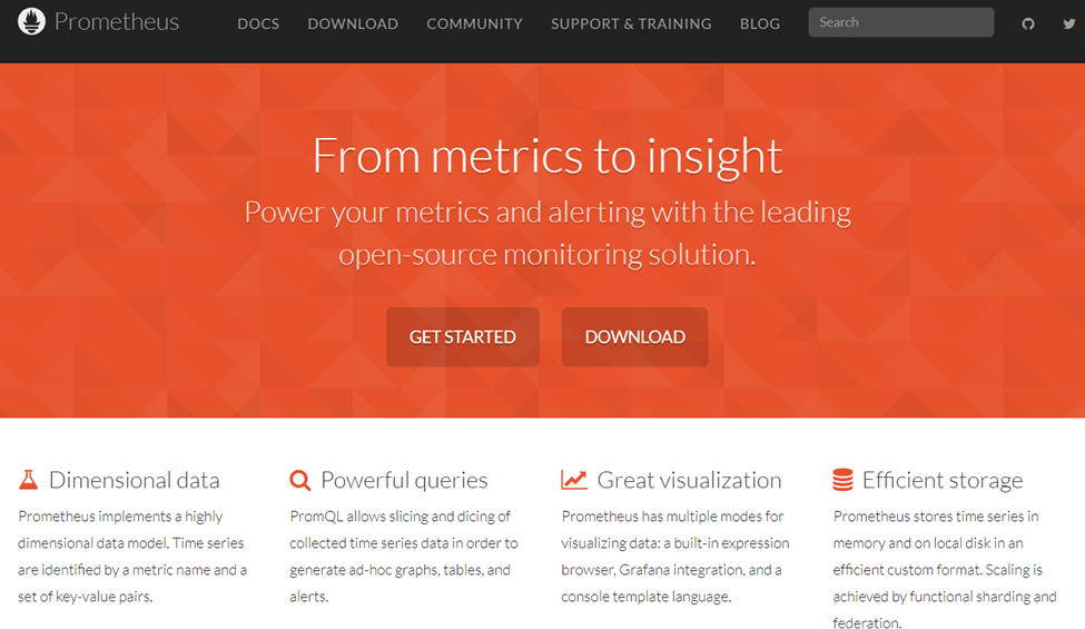 Prometheus是一个开源的系统监控和告警监控工具包,其作为一个非常流行的开源项目工程在社区有众多活跃的开发人员和用户人员,该项目工程在2016年加入Cloud Native Computing Foundation(云原生计算基金会),成为旗下的开源项目,其官方网址为:https://prometheus.io,如下图5-2-1所示。《数据资产管理核心技术与应用》是清华大学出版社出版的一本图书,作者为张永清等著