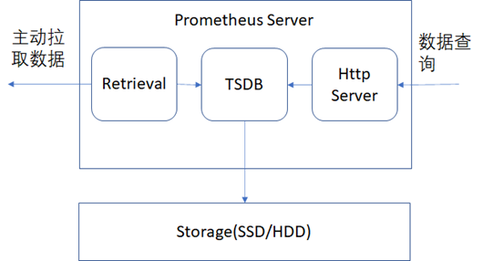 - Prometheus Server:Prometheus的核心服务,负责监控数据的写入和存储,底层的本质是一个时序数据库,并且提供了API服务和其独有的“SQL”查询语言,让外部系统可以便捷的查询到Prometheus上对应的数据,如下图5-2-11所示。