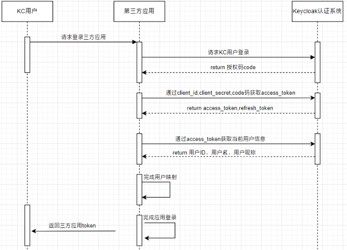 在三方应用自己的callback接口里,可以进行用户的映射与持久化,你可以通过传过来的code来获取当前用户在keycloak平台的access_token,然后你再根据access_token获取用户基本的开放的信息,你可以将这个用户信息保存到应用的本地数据库,当然也可以与你现有用户进行绑定。