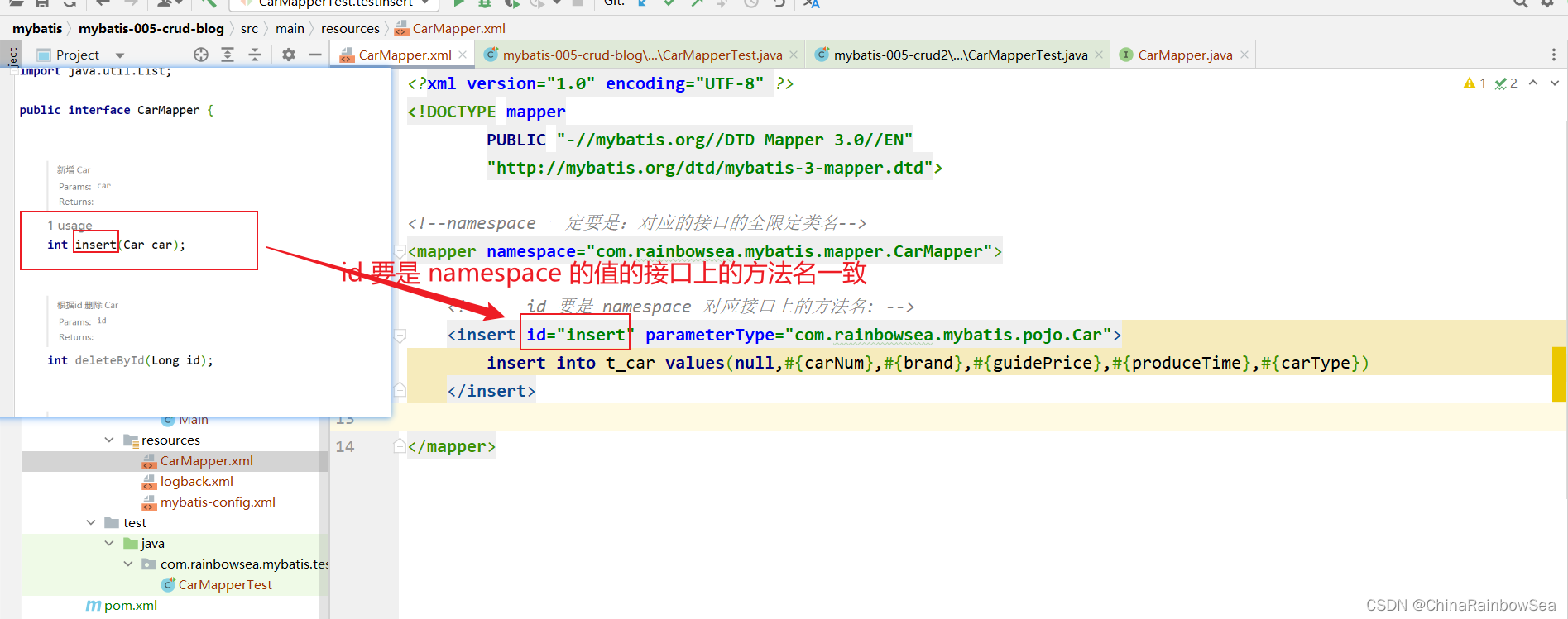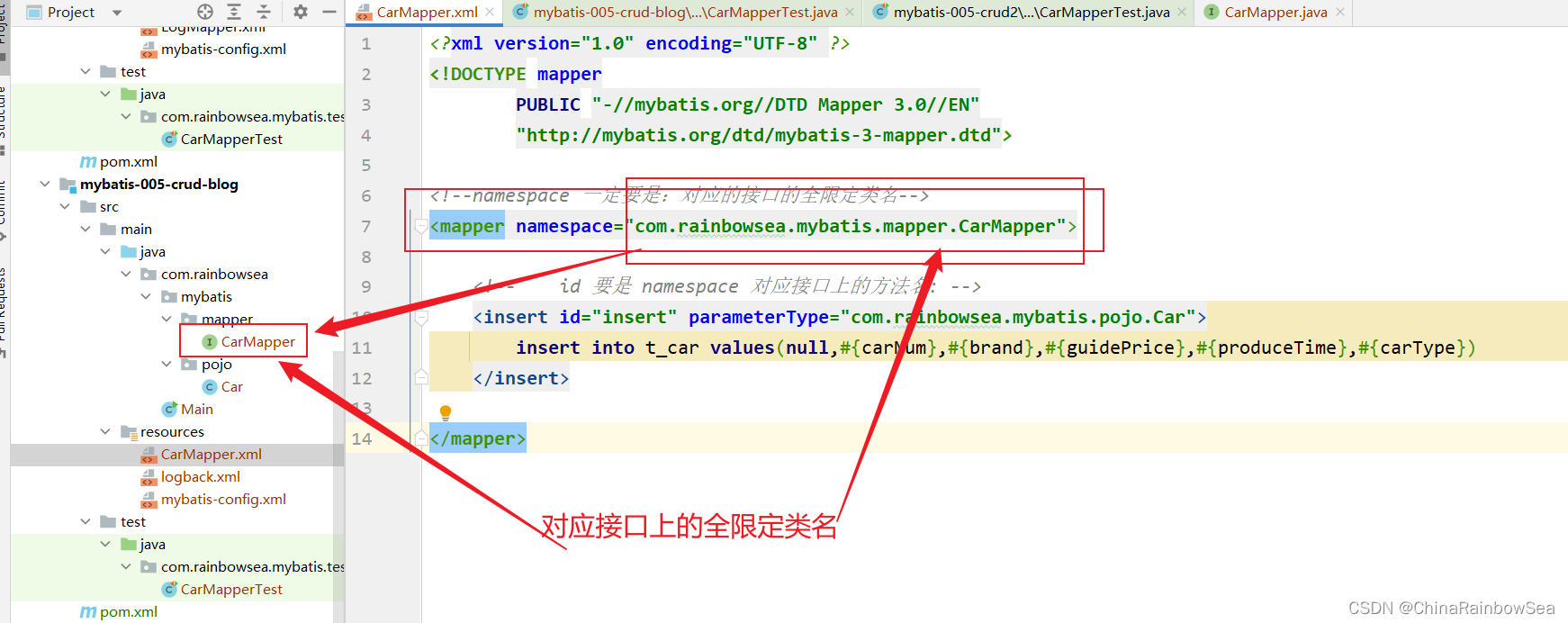 <mapper namespace="com.rainbowsea.mybatis.mapper.CarMapper">