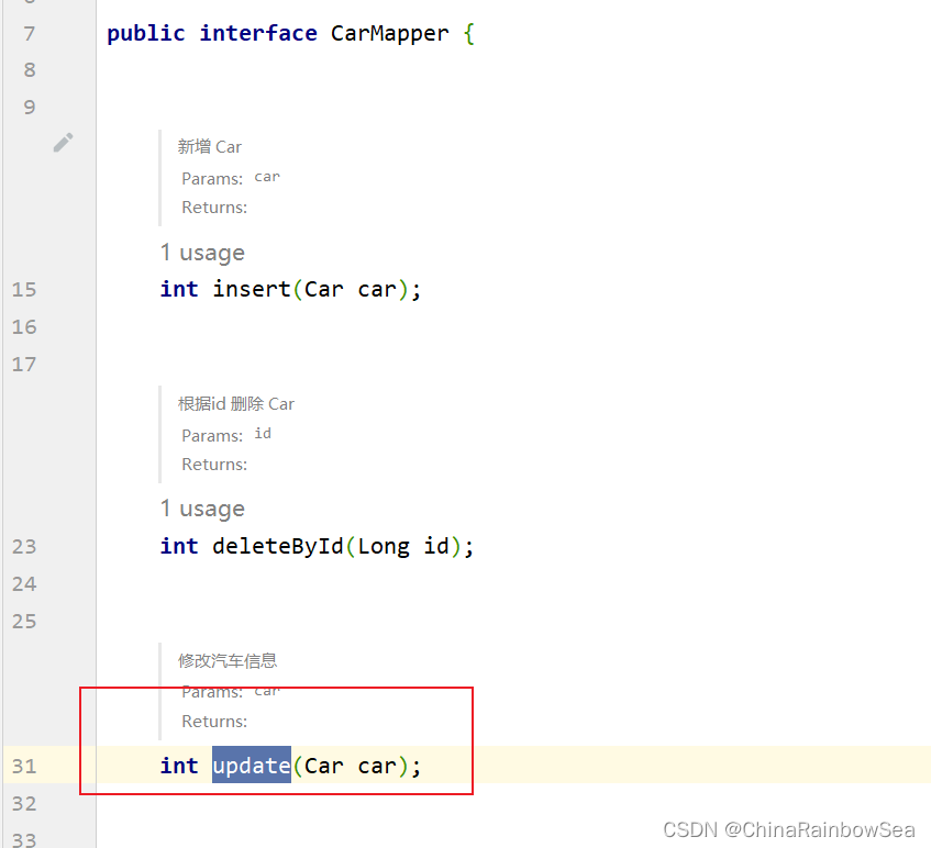 对应 CarMapper 接口中的 update( ) 抽象方法。