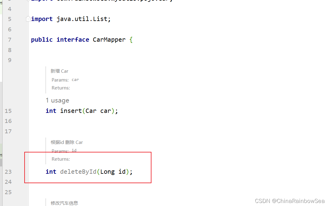 对应 CarMapper 接口中的 deleteById( Long id) 抽象方法。