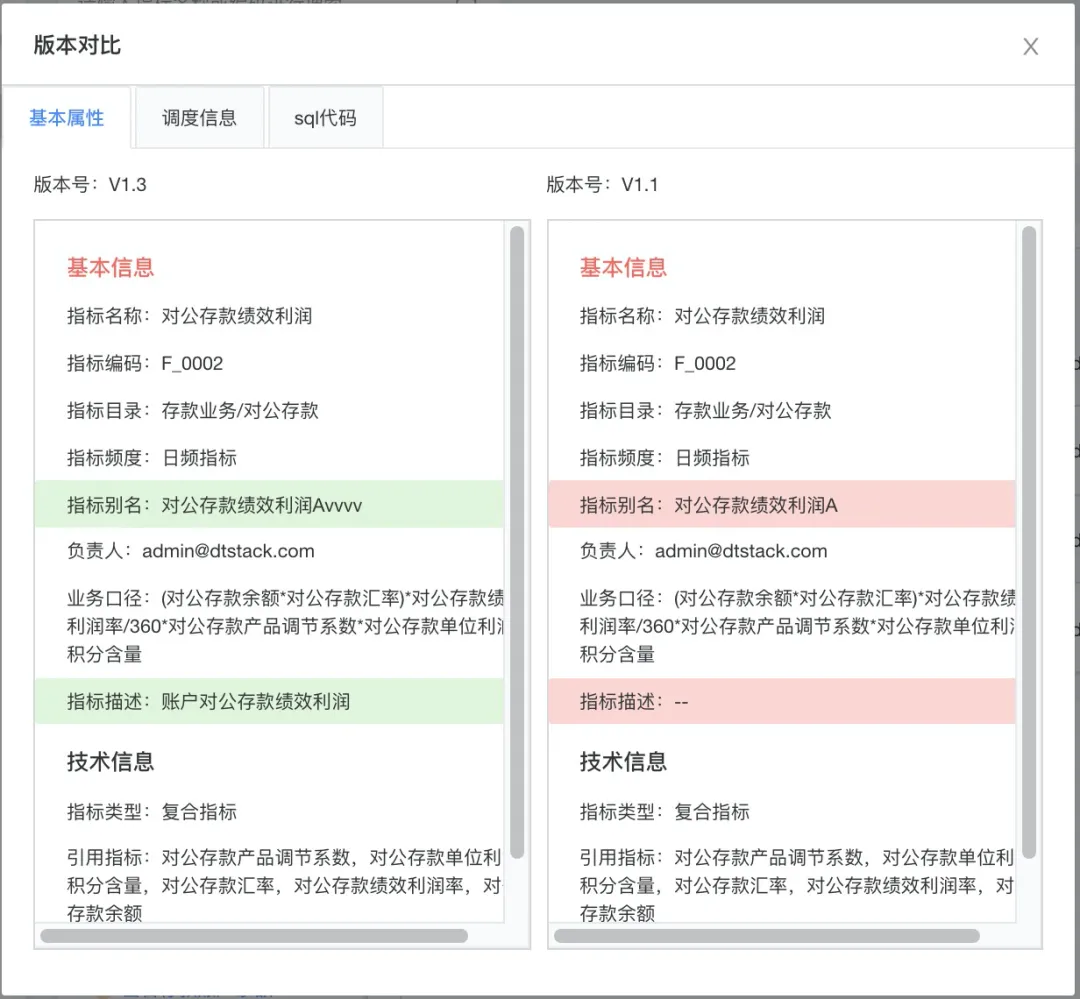 技术信息定义主要依赖平台的「维度-模型-原子指标-派生指标-复合指标」的指标生成规范建立。通过平台的规范性定义与数据落地管理,企业可有效查询指标血缘、管理指标版本。