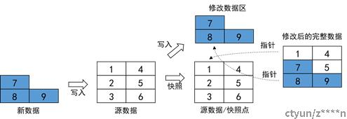 3、修改写时复制快照:在写时复制快照中进行实际的数据修改操作,即将写入请求应用于写时复制快照。