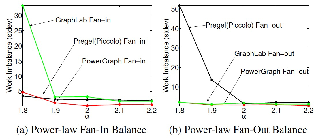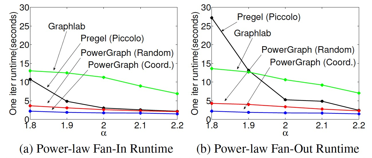 - GraphLab、Piccolo使用随机边切分,PowerGraph使用随机点切分。