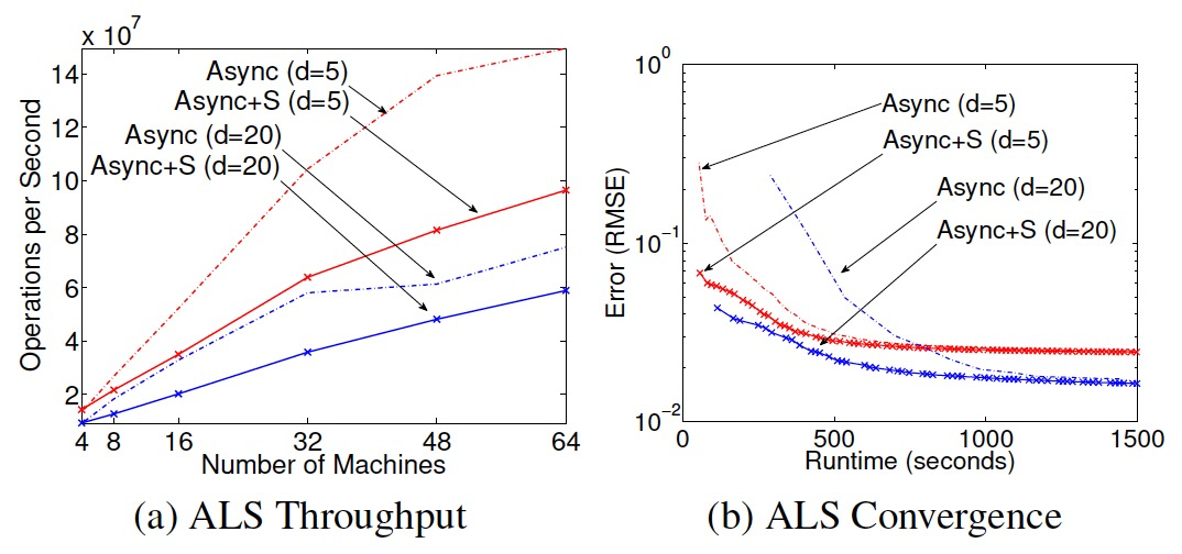 - ALS算法(交差最小二乘),异步引擎的吞吐更高,异步串行化的收敛更快。