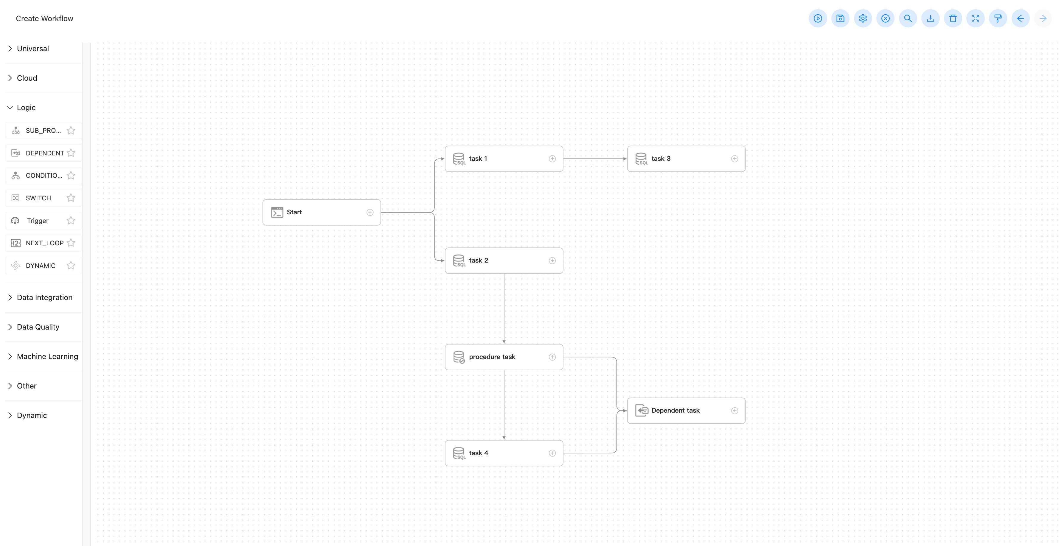 WhaleStudio支持嵌套、多重依赖、循环、条件等复杂任务逻辑组件,支持业务时间日历、分等级参数控制、数据实例调整重跑、恢复失败等操作。