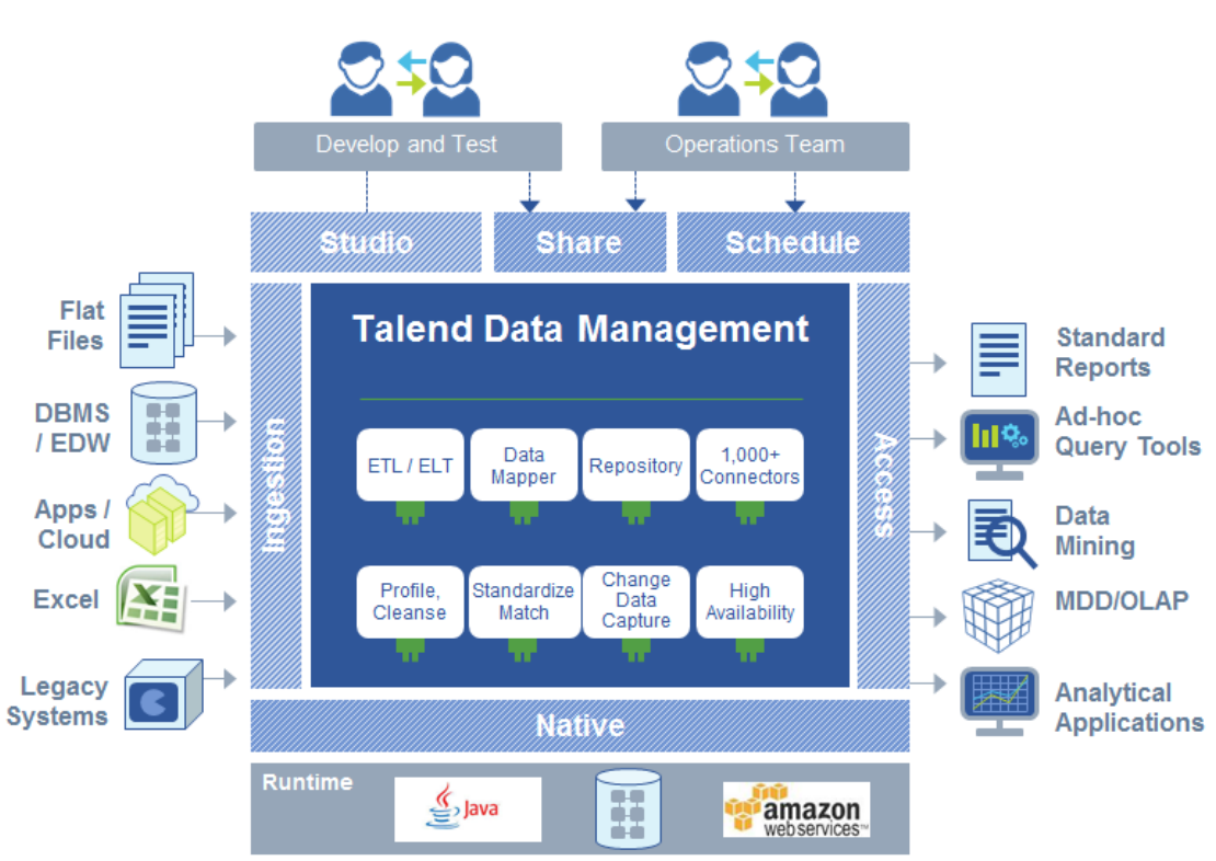 Talend的调度支持在数千级别,同步性能在Tb级数据已经得到验证。