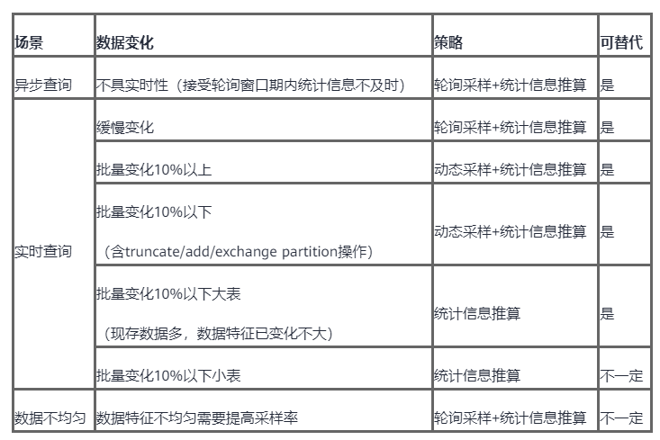 - 调整过采样大小且实时性要求高的场景,需要“主动收集统计信息”。