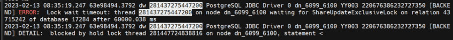 b. 事务块中有手动analyze,且事务块中后面的查询长时间执行不完。