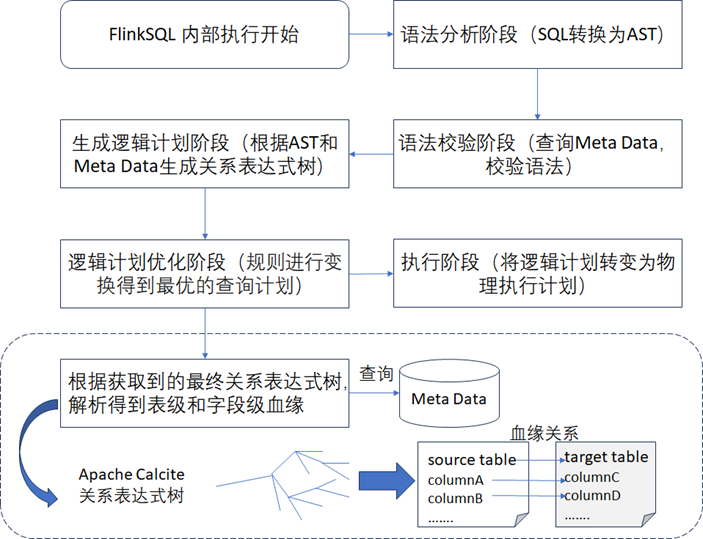 - 第二步:根据查询到的元数据对SQL语句中的语法进行校验,通过第一步中获取到的SqlNode节点树中的信息来获取SQL语句中包含的表、字段、函数等信息,然后通过和元数据进行比对来判断SQL语句中包含的表、字段等信息在元数据中是否存在。