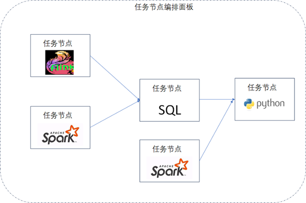 数据任务的编排系统通常是对不同的数据节点类型的任务进行前后运行顺序以及依赖关系的编排,如下图所示。