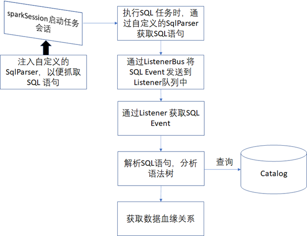 在Spark任务处理中,通过SQL语句来实现离线的ETL 数据处理是其在大数据中最常见的应用方式,如下图所示针对这种应用场景,可以直接通过获取Spark 中运行的SQL语句,然后通过解析SQL语句,并且结合Catalog,来分析出SQL 语句中包含的输入表和输出表的数据血缘关系。《数据资产管理核心技术与应用》读书笔记