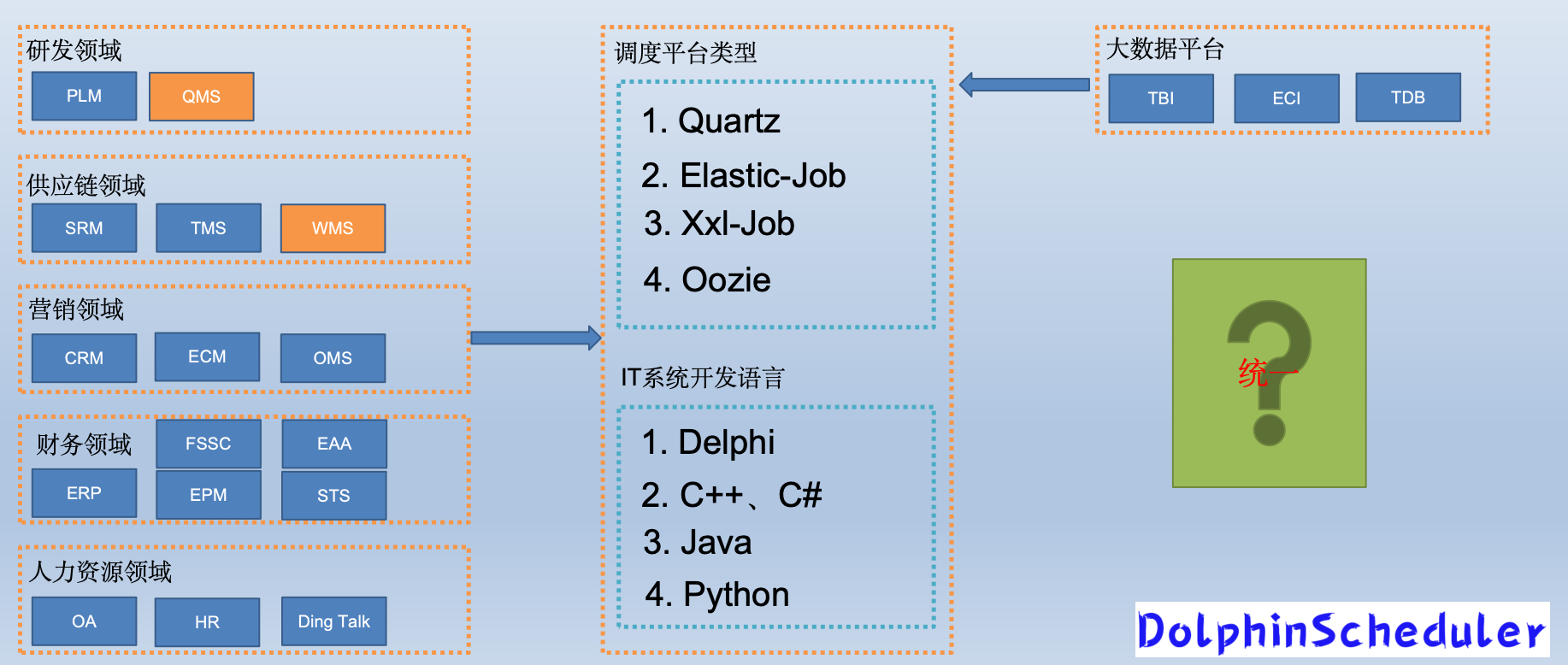 这让我思考,是否可以做一个统一的大数据调度平台,统一调度与语言?恰好这时大数据部门的领导推荐了Apache DolphinScheduler。