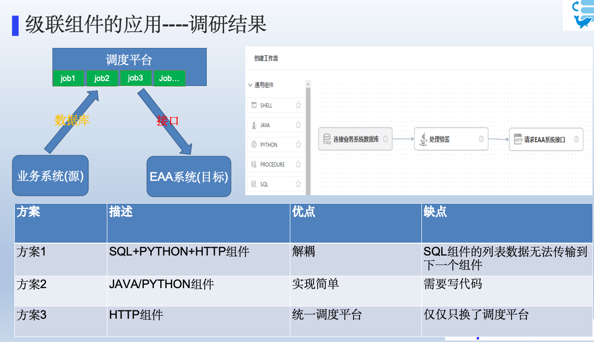 方案3: HTTP组件,这个方案需要统一调度平台,可以写一个http接口去驱动源系统向目标系统发出请求,但仅仅是换了调度平台。
