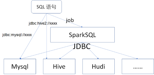 - SQL脚本:一般是指通过JDBC的方式直接提交和运行SQL脚本从而获取数据质量结果,常见的关系型数据库,如MySQL、SQLServer等都是支持JDBC的,并且Hive也是支持JDBC连接的,另外还可以通过SparkSQL Job的方式来运行SQL脚本,如下图所示。