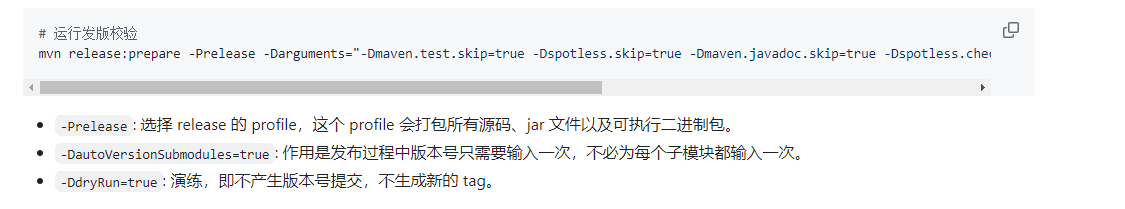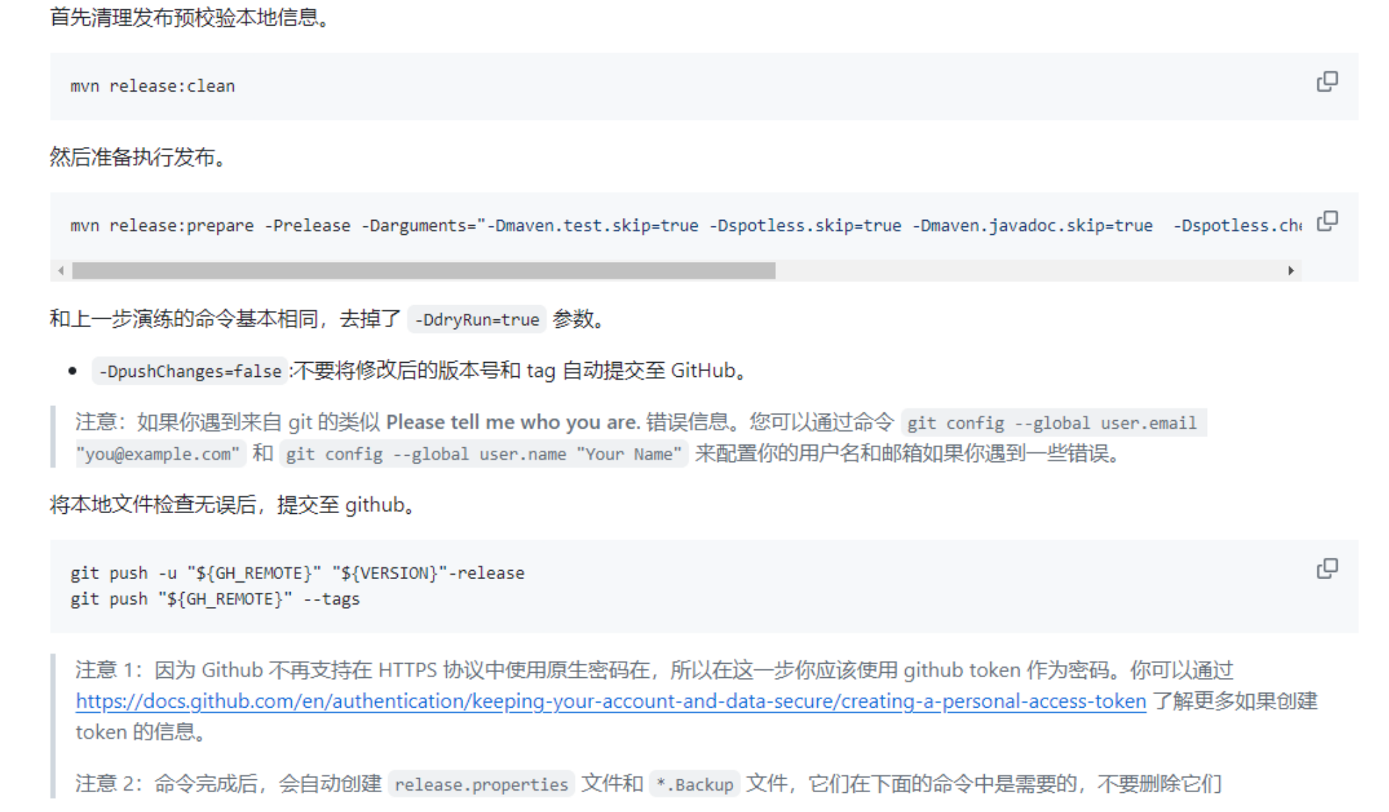 这里如果是多次发版,需要再执行 mvn release命令之前清理掉本地和远程(官方仓库)的tag,否则会报错。这里需要提前配置 注意1 的内容。