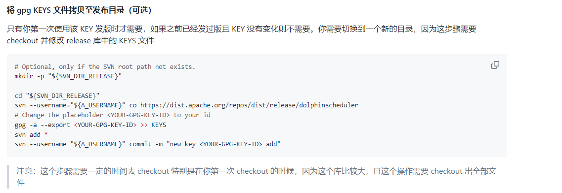 这里DolphinScheduler并没有打开对应的设置,所以这部分需要将gpg-key-id导出来后发给PMC帮忙添加,或者在发版邮件后补充。但是尽可能是添加到KEYS里面。