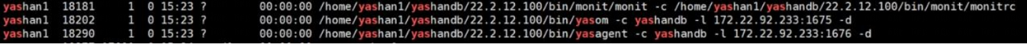 如上可知数据库,os yasom yasagent yasdb进程均被监控,数据库进程成功被守护。
