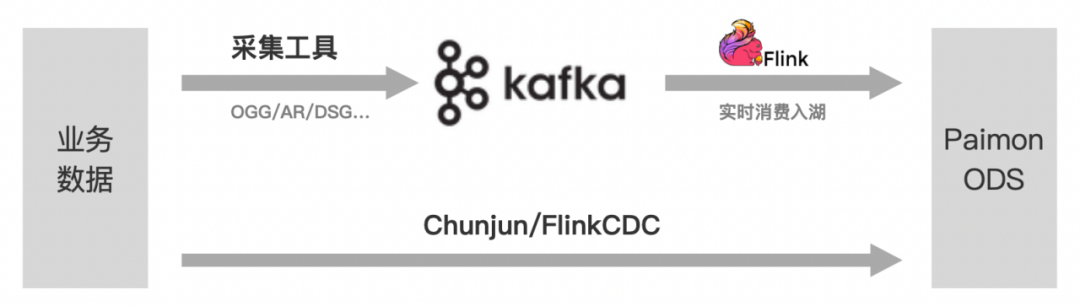 不管是通过 Flink 消费 Kafka,还是通过 FlinkCDC 采集日志,都可以将源库数据实时同步至 Paimon 中。