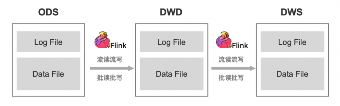 从上面的架构图中可以看出,Paimon 存储将文件分为 DataFile 和 LogFile:
