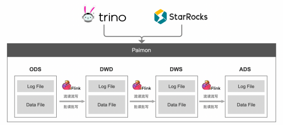 根据实际业务场景需要,使用 Flink+Paimon 的统一技术栈,进行离线任务和实时任务的独立开发。