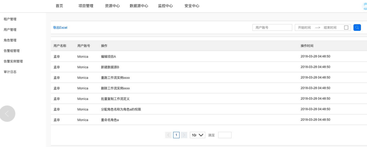 - 支持Excel导出以及用户操作查询
