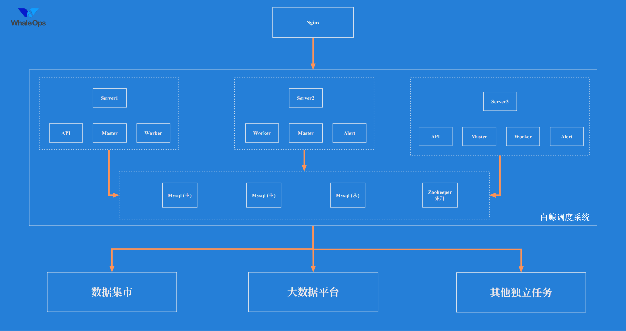 系统所有服务均采用分布式部署,支持高稳定性、高性能和高容错性,保证提供可持续使用的服务,即使客户的数据中心散步在全国各地,白鲸调度系统也能轻松应对来自客户不同部门数据系统的处理需求。