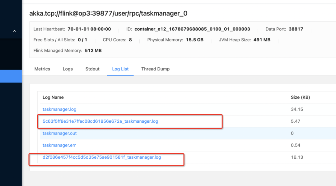 如果 TaskManager 里的每个任务的日志都在不同的日志文件里,每个日志文件的名称就是 jobid,那么在查看任务日志时只需要查看 jobid 的日志文件即可。