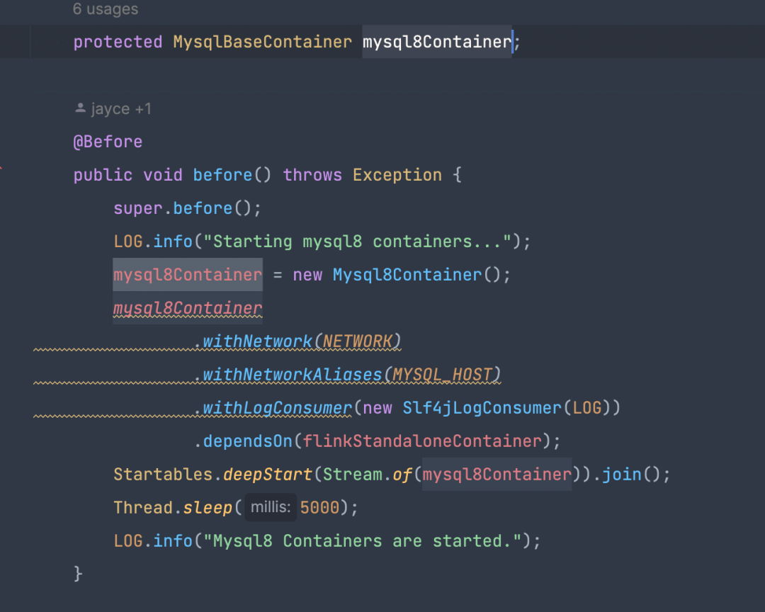 · 基于 TestContainer 和第一步的 DockerFile 创建对应的数据源 container