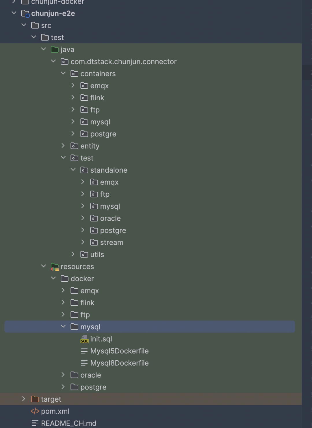 当前 ChunJun-e2e 模块已经支持了 MySQL、PgSQL、Oracle、FTP、EMQX 的测试,后续社区会持续性的补充 e2e 测试的插件。