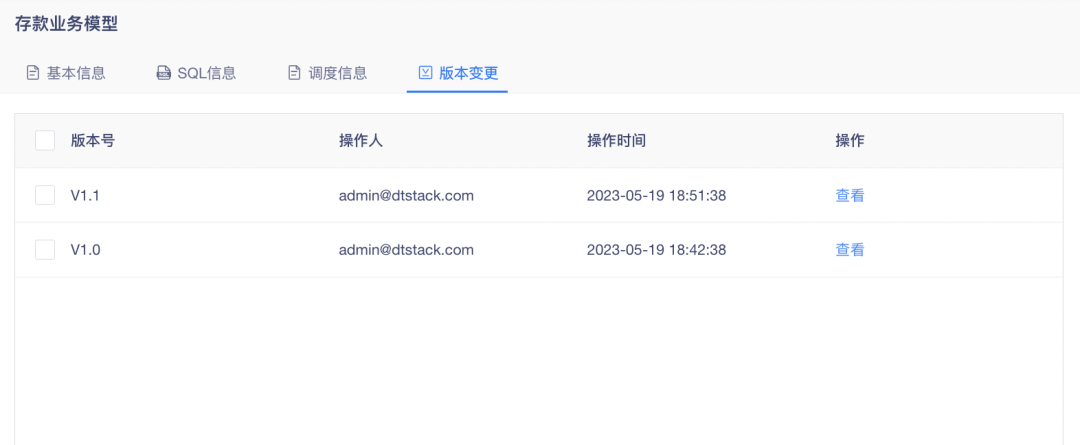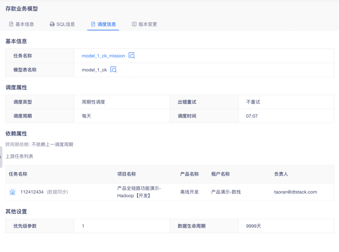 • 模型详情中的「调度信息」显示调度相关信息,包括表/任务信息、调度信息、数据生命周期等
