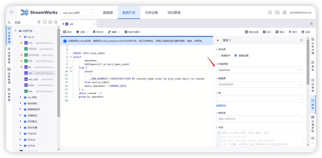2.任务选择中支持选择落表模型对应的模型任务