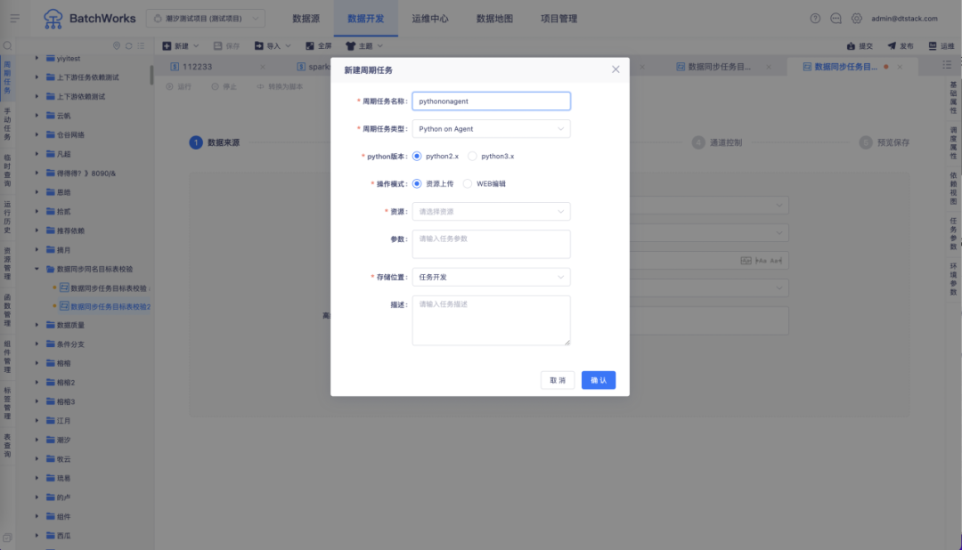 新增功能说明:支持新建 Python on Agent 任务,Python on Agent 任务将独立在控制台配置的节点上运行,不会占用 yarn 的资源。