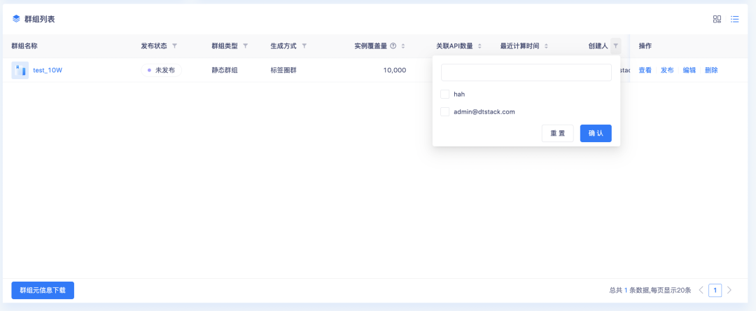 3.群组列表中,创建人支持筛选