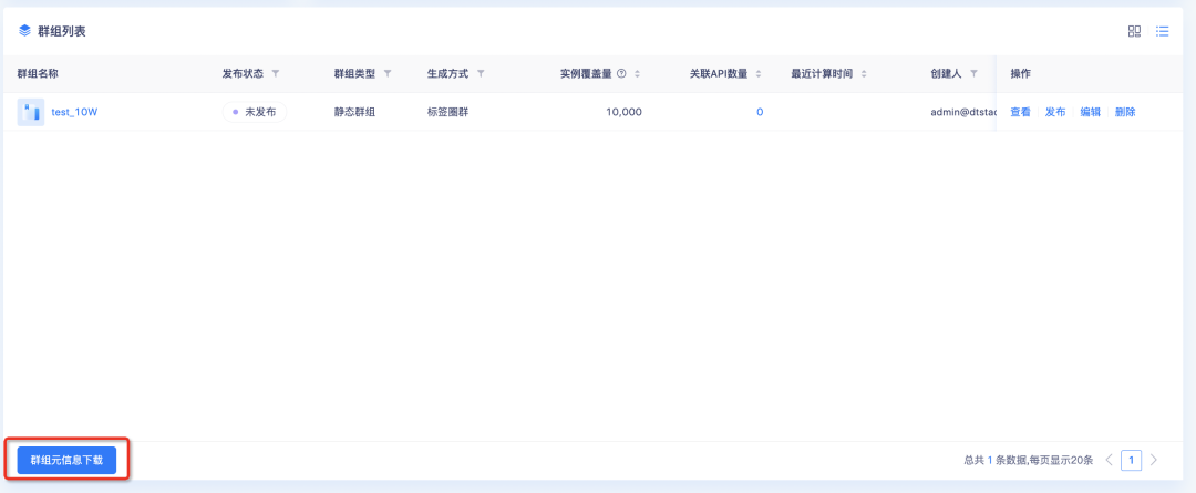 新增功能说明:进入群组管理页面,点击「群组元信息下载」可导出所有筛选后结果。导出结果将以CSV格式放至下载中心,可前往下载中心进行文件下载。