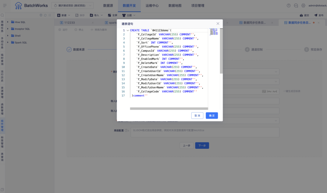 任务类型:Spark SQL、Hive SQL、数据同步任务、HadoopMR、PySpark、Spark、Flink
