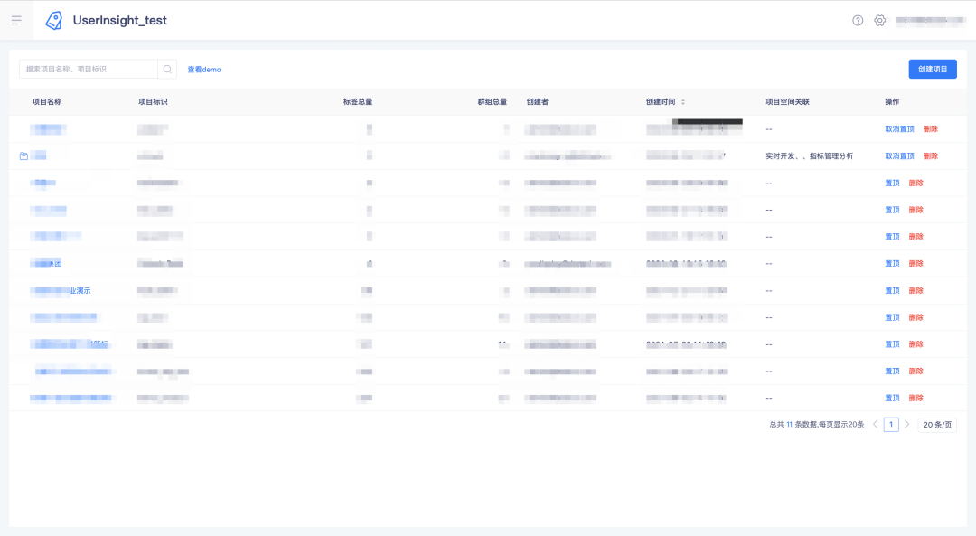 配置生效后,标签产品内部引用位置,如项目列表中的项目空间关联子产品,如下:
